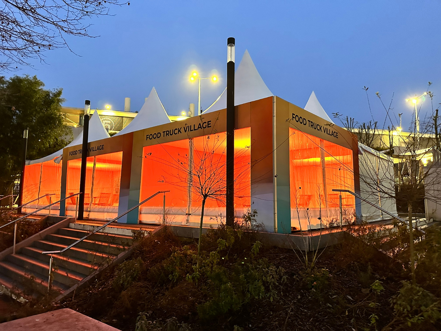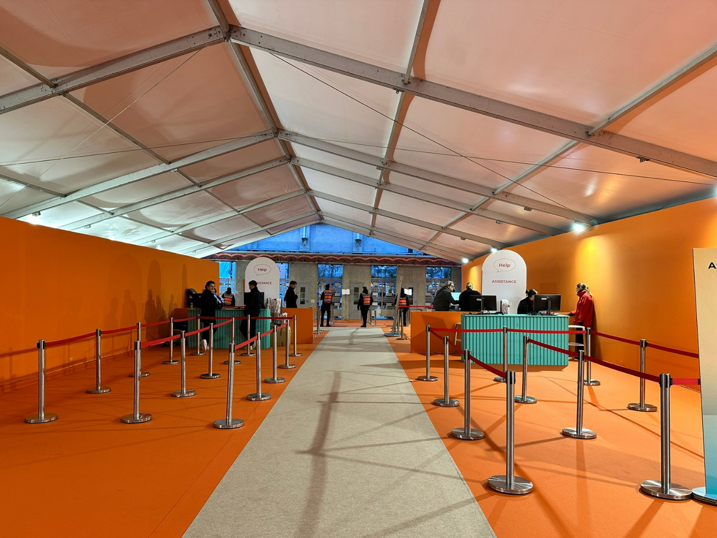 À l’extérieur des halls, nos équipes ont conçu et installé des structures métallo-textiles sur mesure afin de couvrir les cheminements exposants, les zones d’accueil et les espaces de bagagerie.