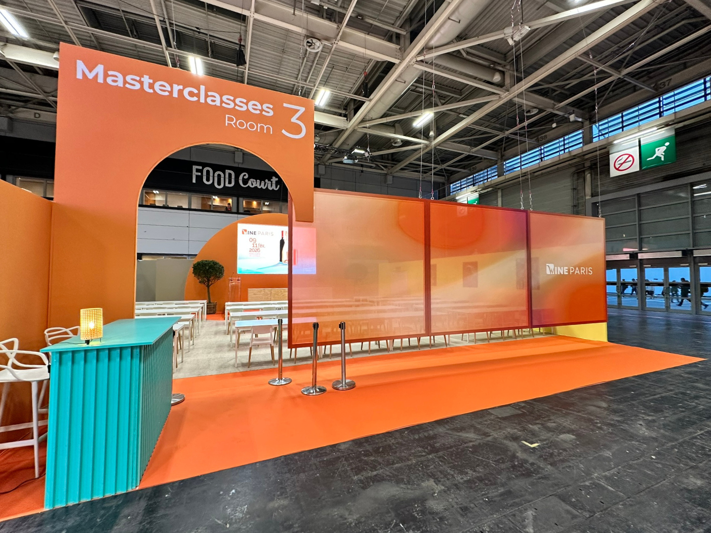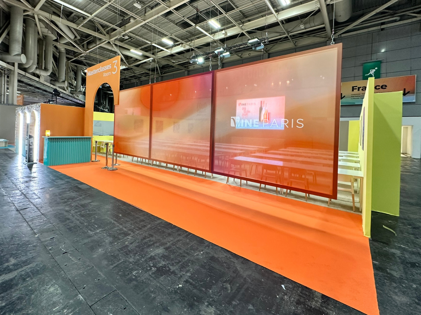 Le dispositif déployé sur le salon Wine Paris à Paris Expo Porte de Versailles combine structures métallo-textiles, installation générale et ameublements spécifiques pour l’accueil des visiteurs et des exposants.